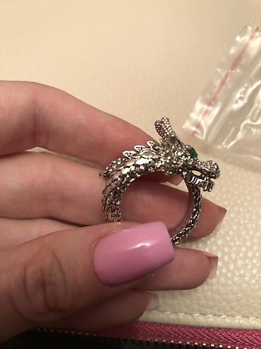 Gümüş tonlarda, əjdaha fiqurlu dizayna malik üzük.