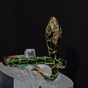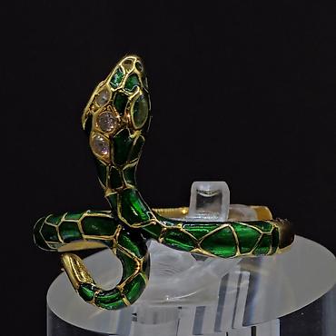 - Bəzək daşı: İlanın baş hissəsində bir tərəfdə sırayla yerləşdirilmiş şəffaf, parıltılı daşlar; göz hissəsində əlavə yaşıl daş vurğusu.