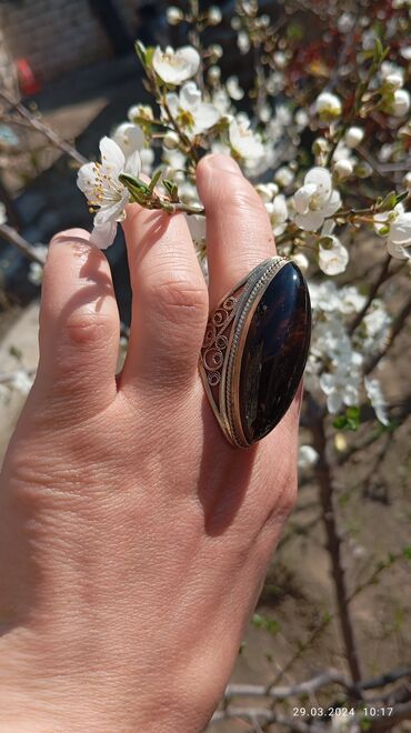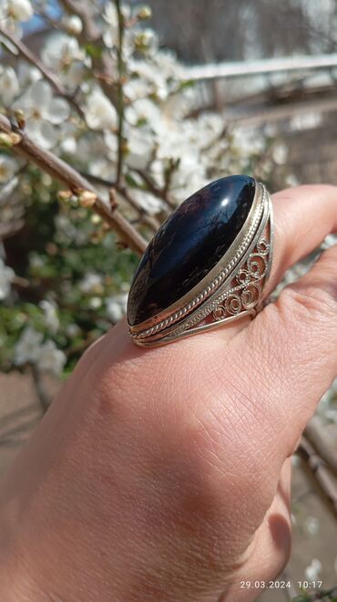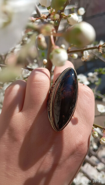 Digər brendКольцо с натуральным камнем Обсидиан Кавказ. Размер 19.5. Шикарное кольцо и мощный оберег хозяйки!