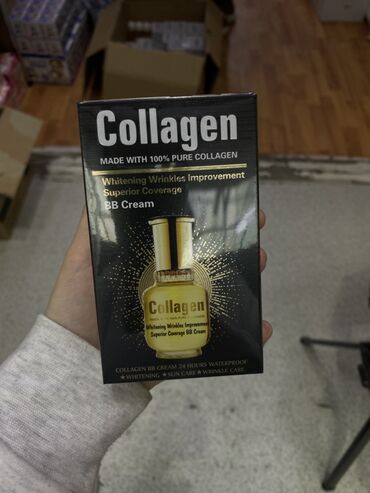 - BB Krem: “Whitening Wrinkles Improvement, Superior Coverage”. Qutuda qeyd: “Collagen BB Cream 24 Hours Waterproof – Whitening – Sun Care – Wrinkle Care”.