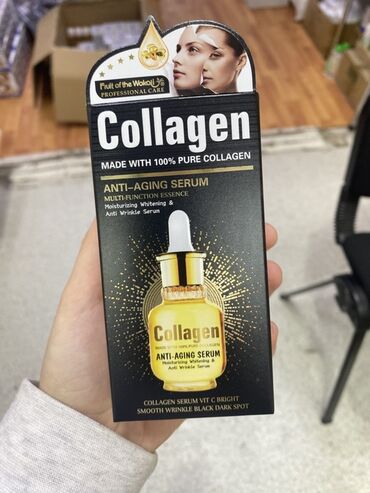 - Anti-Aging Serum (Multi-Function Essence): nəmləndirici, ağardıcı və qırış əleyhinə serum. Qutuda qeyd: “Collagen Serum Vit C Bright – Smooth Wrinkle Black Dark Spot”.