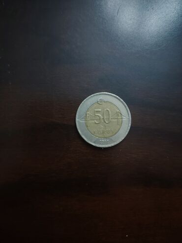 -2) 50 Kuruş (Türkiyə) – 2012 buraxılışı, bimetal. Ön üzdə “50 Kuruş” yazısı və 2012 tarix, aypara-ulduz və ornamental elementlər. Arxa üzdə portret, kənarda “TÜRKİYE CUMHURİYETİ” yazısı. Qiymət: 10 Azn