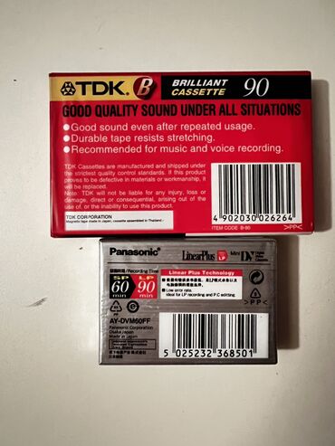Kasetlər satılır upakovkada və işlənməmiş və içi yazılmamış kaset. Qiymətlər dənəsi 6-10 azn arası dəyişir audio kasetlərin. Videokaset K-Scan qiymətləri isə 4 azndir və 90 ədəd var. DVC mikro vide...