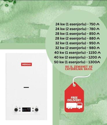 Kombi "Mergas" 2 il rəsmi zəmanət. Bakı daxili, çatdırılma və zəmanət (işə salma) pulsuzdur. Nağd və köçürmə ilə əldə edə bilərsiz. Mergas 24 kw (1 esenjorlu) ----------750 azn Mergas 24 kw (2 esen...