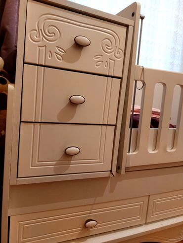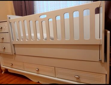 Komplektə daxil olanlar: beşik korpusu, sürüşən mühafizə paneli, sol çekmecəli modul, alt çekmecələr, üst qapaqlı bölmə.