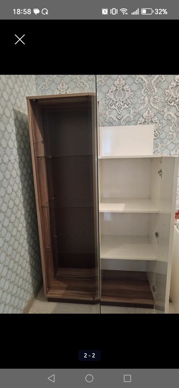 Şüşə vitrın şkaf satılır. İki Ədəddir , ela vəziyyətdədir. Biri 80 manata satılır, Türkiyə istehsalı mebeldir, Alfemo firmasınındir - Dizayn: Ağ çərçivə və taxta teksturalı arxa panel ilə müasir ...