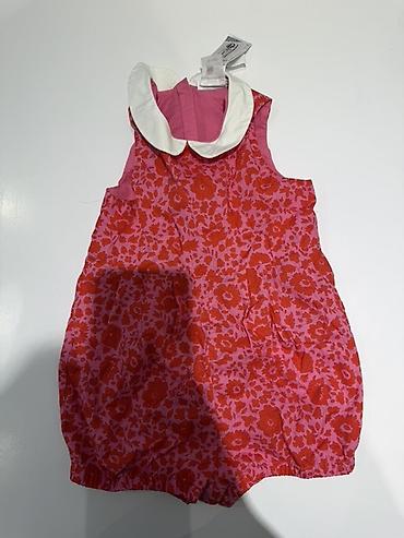 Jacadi Paris uşaq tulumu (romper) - Model: qısaqollu, yüngül yaylıq romper - Naqış: çəhrayı və narıncı ürək printi - Yaxa: ağ, dalğalı kənarlı Peter Pan tipli yaxa - Bədən hissəsi: elastik ətək və...