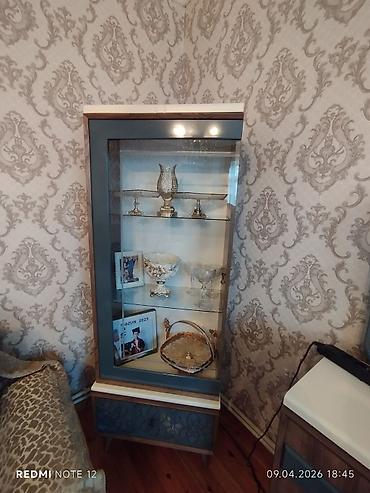 - 2 ədəd şkaf-vitrin – şüşə qapılı, 2 şüşə rəfli, aşağıda qapalı bölmə.