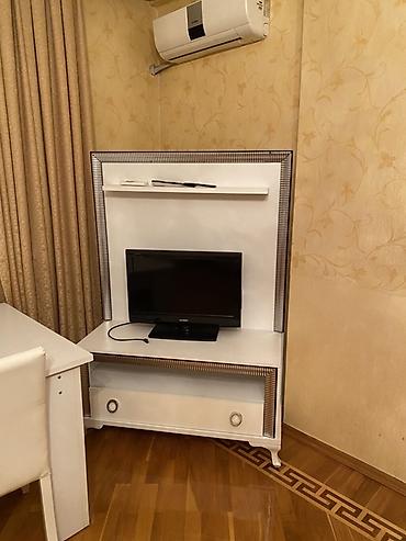 - TV stendi: üstdə kitab/aksesuar rəfi, ortada TV üçün bölmə, altda açıq rəf və iri çekmece.