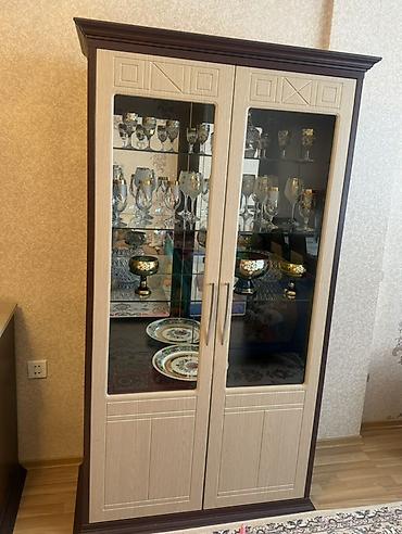 Səliqəli istifadə olunub.Klassik üslubda zövqlə işlənmiş qonaq otağı mebel dəsti. Tərkib: - Böyük vitrin şkaf: ön və yan hissələri şüşəli, içəridə şüşə rəflər; aşağı bölmədə qapalı dolablar və çek...
