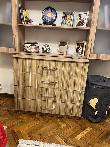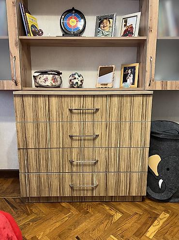 - 4 geniş çekmecəli komod (uzun metal tutacaqlar, sakit sürüşən mexanizm).