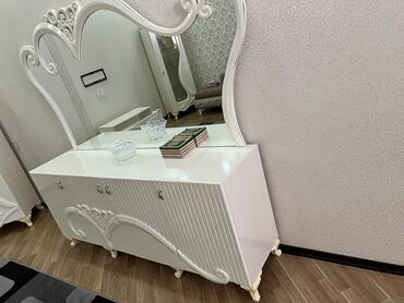 Komod - İstanbuldan gətirilib, material türk laminatı, altında oturacağı var və güzgüsü (açılan vəziyyəti sonuncu şəkildə əks olunur). Hər şey çox funksionaldır, az istifadə olunub və çox yaxşı və...