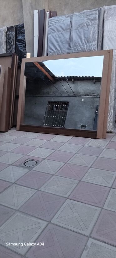 Ağac naxışlı komod və güzgülü. siriymələrində problem var. - - Ölçülər (təxmini): eni 100–110 sm, hündürlük (güzgü hissəsi ilə) 110–120 sm, dərinlik 40–45 sm.