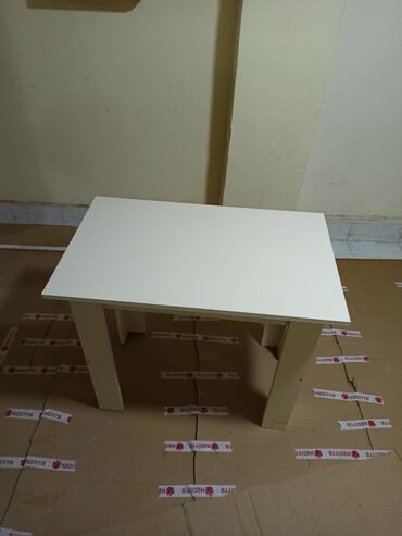 Sadə və funksional masa - Rəng: krem/bez - Forma: düzbucaqlı, dörd küncü yumrulanmış - Material: ağac əsaslı lövhə (MDF/LDSP tipli), hamar boyalı səth - Konstruksiya: dörd möhkəm ayaq, altda əlavə...