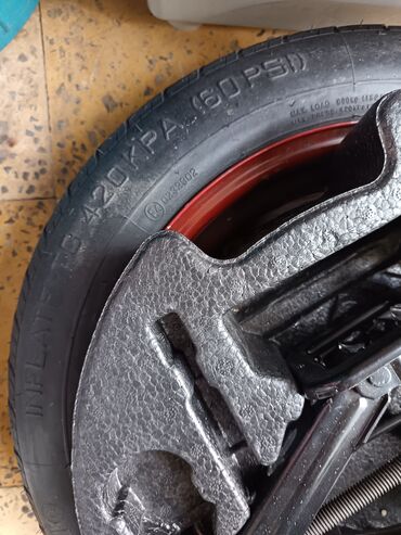 - Kompakt ehtiyat təkər (space saver) – şin üzərində işarə: Max Press 420 kPa (60 PSI), Max Load 690 kg. Qırmızı rəngli disk.