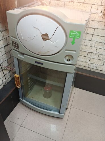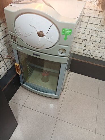 Qeyd: Ön yuxarı paneldə çatlamış plastik örtük görünür. Daxildə bir rəf və alt hissədə qab qoyuluş yeri mövcuddur.