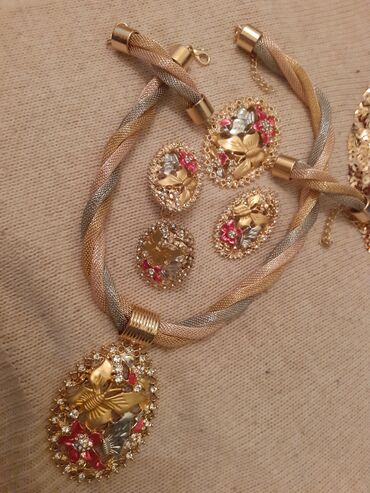 Bijuteriya dest - sirga ve uzuk. Tezedir. Uzuyun olcusu 18-19. 10 man