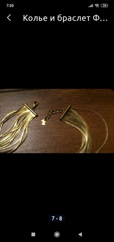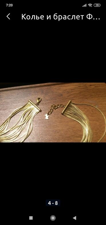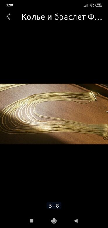 Qızılı rəngli zəncir kolye və bilərzik dəsti. Hər iki aksesuarda ön