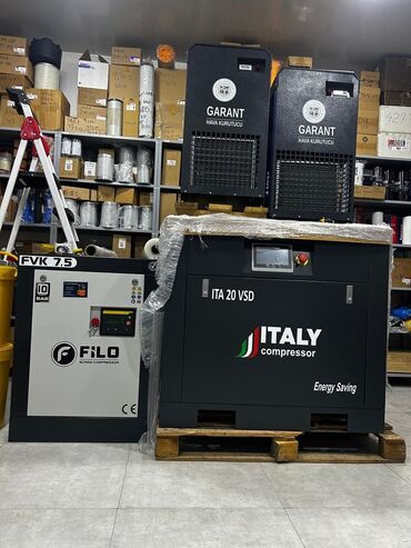 7,5kv Vidalı hava kompressoru və 1,2 kubluq quruducu dəst. Avadanlıqlar Türkiyə istehdalıdır və hər biri zəmanətlidir.