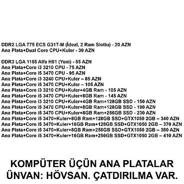 Kompüter üçün Ana Platalar YOXLAMAĞA ŞƏRAİT VAR! 📍Ünvan: Bakı şəh