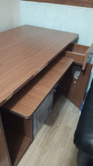 Ev və ofis istifadə üçün funksional masa, komputer aksesuarlarının səliqəli yerləşdirilməsi üçün əlverişli quruluşla.