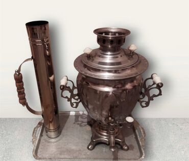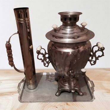 Məhsul: Sovet tipli od samovarı - Həcm variantları: 3 litr, 5 litr, 7 litr - Material: klassik metal gövdə, relyefli korpus - Yanacaq: od/köz ilə işləyir - Konstruksiya: çıxarıla bilən baca, kranl...