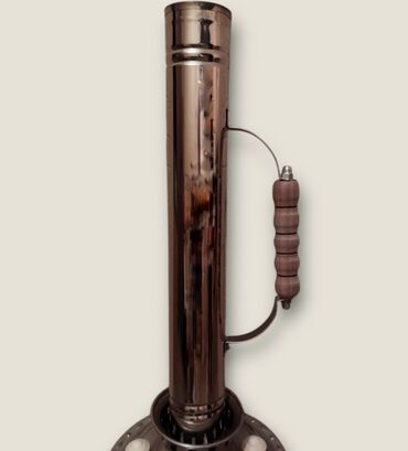 Paslanmayan poladdan hazırlanmış samovar tipli çay dəmləyənlər (2 ədəd). - Yanacaq: kömür/odunla işləyir, aşağı hissədə hava tənzimləmə dəlikləri və kül qapısı var. - Su tutumu: iri qazanlı üst...