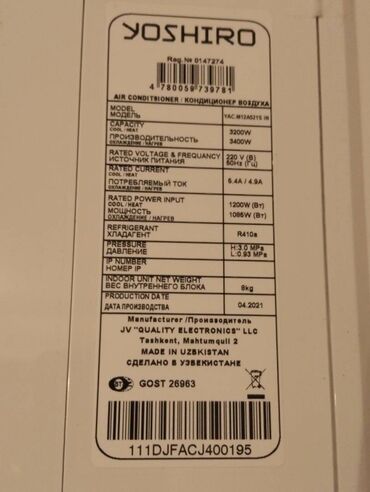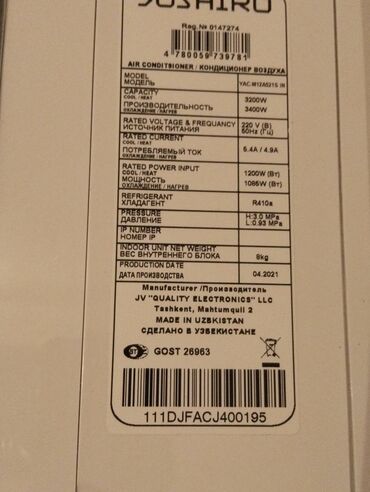 Kondisioner Shivaki, İşlənmiş, 40-45 kv. m