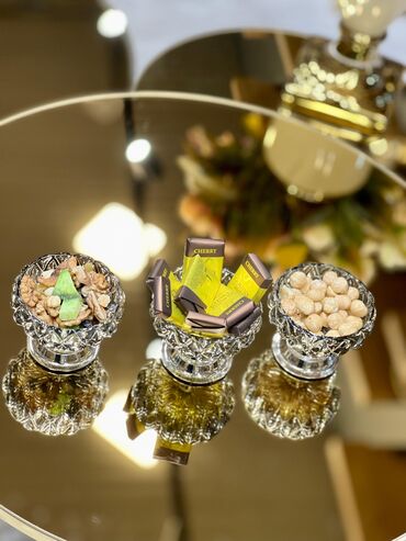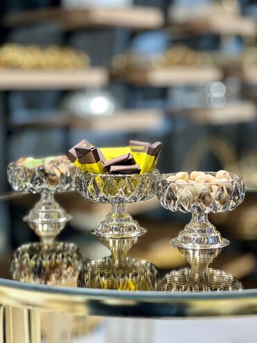 Tort və şiriniyyat qabı, rəng - Qızılı, Şüşə, Türkiyə