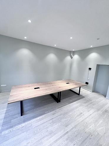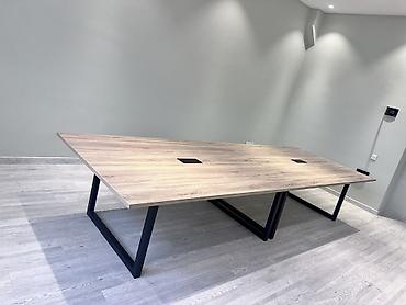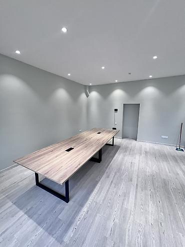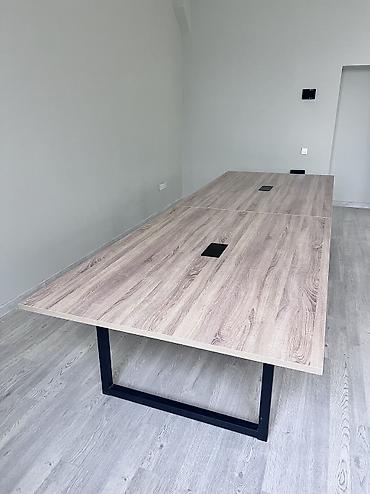 Ofis üçün toplantı/konfrans masası - Ölçü: təxminən 8–10 nəfərlik geniş format (uzun düzbucaqlı). - Material: təbii ağac fakturalı laminat üst səth; hamar, asan təmizlənən və cızılmaya dayanıqlı. ...