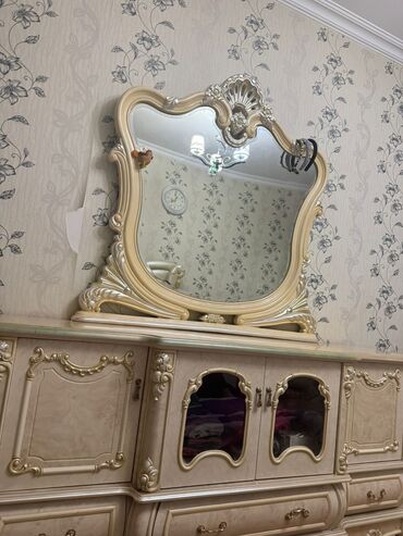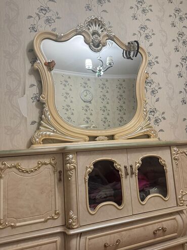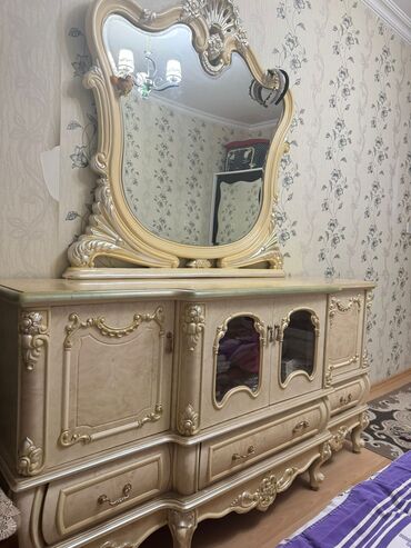 Klassik üslubda dekorativ naxışlarla işlənmiş güzgülü bufet/konsol dəsti. Ünvan Sabirabad şəhəri. hərbi komisarlığın yanı. endirim olacağ - Korpus: parlaq krem rəngli fasadlar, qızılı yunan açarı (...