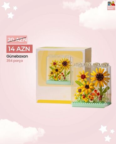 - Günəbaxan – 354 parça. Şəffaf çərçivə daxilində günəbaxan və müxtəlif çiçəklərdən ibarət kompozisiya, masaüstü dekor üçün uyğundur.