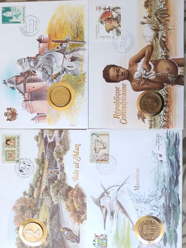 Pulsuz çatdırılmaКонверты первого дня с редкими монетами стран ( Аруба, Маврикий,Люксембург,Сан Томе и Принципи,Остров Мен,Центральная Африка),цена каждой по 25манат.