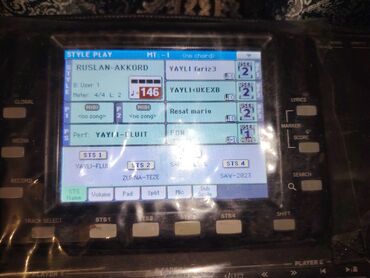 - Style və Performans yaddaşı: ekranda “RUSLAN-AKKORD”, “YAYLI-FLUIT”, “ZURNA-TEZE” və s. istifadəçi stylları/perfomansları görünür
