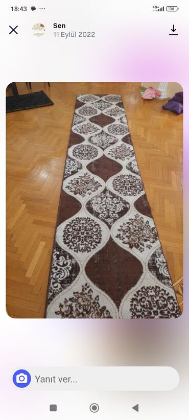 - Model 2: Qəhvəyi və krem tonlarında rombvari panellər içində klassik ornamentlər. Uzun formalı, kənarları overlok tikişlidir. Neytral rəng palitrası sayəsində müxtəlif mebel və döşəmə tonları ilə uyğunlaşır.
