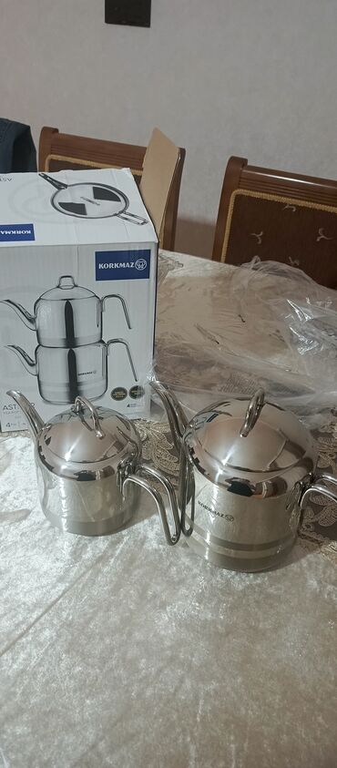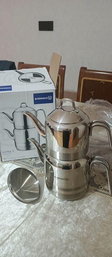 • Komplekt: 4 hissə – üst çaydan + qapaq, alt dəmlik/ketel + qapaq