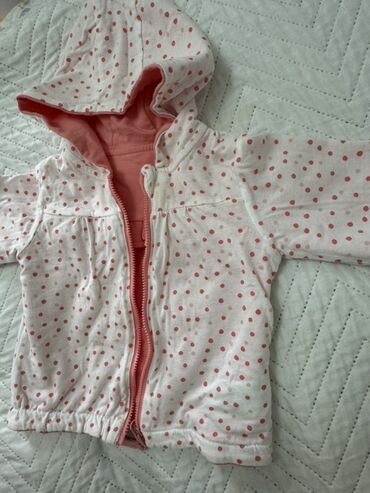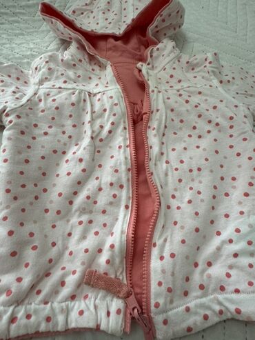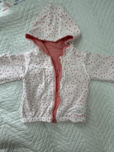 Uşaq üçün kapüşonlu sweatşirt dəsti - Rəng: ağ və açıq çəhrayı kombin. - Üzəri fermuarlı, iki tərəfli açılıb-bağlanan fermuar. - Kapüşonlu model, iç hissəsi yumşaq isti flis/penye qatlı. - Ön tərə...