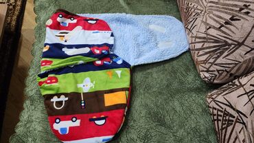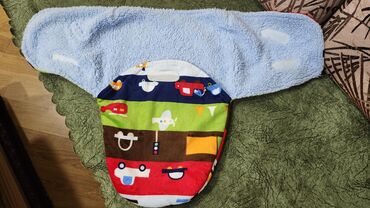 Məhsul: Yeni doğulan körpə üçün bələk/zərf tipli yorğan - Rəng: Açıq mavi - Material: Parlaq saten görünüşlü üst qat, iç hissəsi yumşaq və isti doldurmalı - Dizayn: Ön hissədə iri, dekorativ bant ...