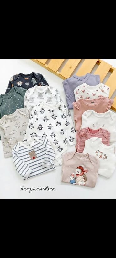 - Neytral pastel rənglər və zərif naxışlar: ayı, kirpi, fil, pinqvin, çiçək, xırda zolaq və xallı printlər.