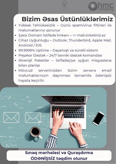 Şəxsi Domain İstifadə İmkanı – mail.sirketiniz.az Cihaz Uyğunluğu – Outlook, Thunderbird, Apple Mail, Android / İOS
