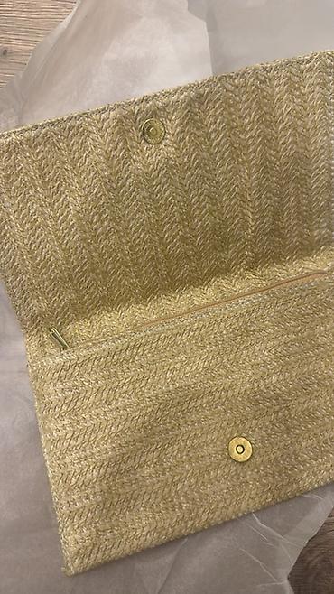 Zərif axşam çantası (klatç) - Rəng: şampan/qızılı tonlarında parlaq tekstura - Forma: qeyri-adi çoxbucaqlı dizayn, sərt korpus - Material: parıltılı toxumalı parça, qızılı tonlu metal çərçivə - Ba...