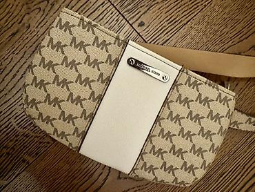 - Material: MK loqolu monoqram parça və ağ rəngli dəri ön panel