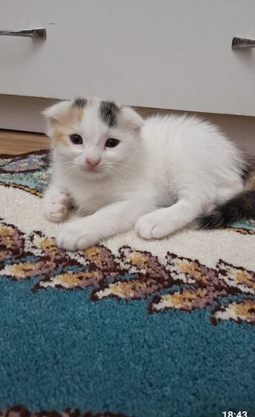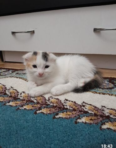 Skottiş Fold balası – ağ tüklü - Qıvrıq/qulaqcıqlı tipik Fold qulaqları - mavi gözlər 40günlük baladırlar təmiz cinsdilər Qiymət razılaşma yolu ilə