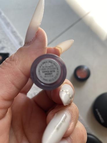 - MAC kiçik kölgə/xbaza (tək fara) – isti kərpic-narıncı ton. Göz makiyajında dərinlik və istilik verir, payız-qızılı tonlarla əla uyğunlaşır.