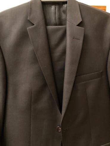 Geyim sifarişlə yeni alınıb gətirilib və sadəcə 44-0 ölçüsü uyğun gəlmədiyindən satılır. İki parçalı kişi kostyumu – qrafit boz rəngdə - Üst: ikicərgəli düymələmə, geniş haşiyəli (peak lapel) yaxa,...