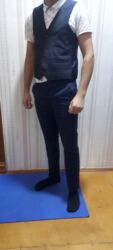 Kişi kostyumu satilir, 1 defe geyilib nişana, üçlü dəstdir, jileti şalvari penceyi var, razmer 48-50