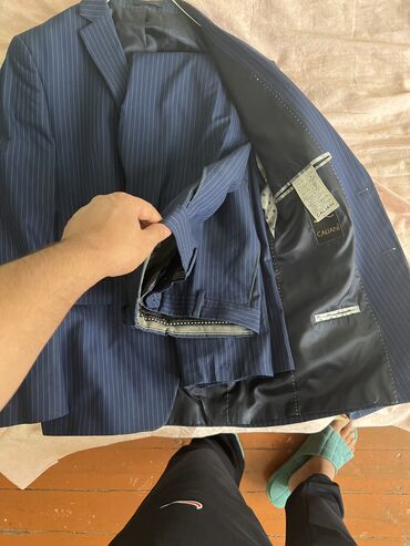 Geyim sifarişlə yeni alınıb gətirilib və sadəcə 44-0 ölçüsü uyğun gəlmədiyindən satılır. İki parçalı kişi kostyumu – qrafit boz rəngdə - Üst: ikicərgəli düymələmə, geniş haşiyəli (peak lapel) yaxa,...