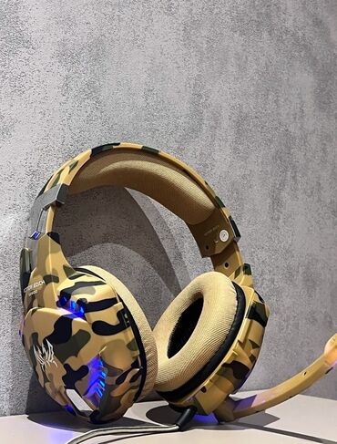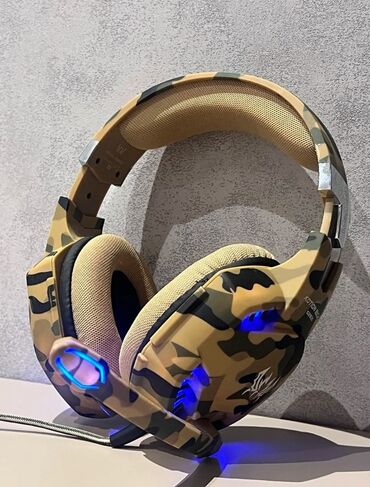 KOTION EACH G2000 oyun qulaqlığı kamuflaj naxışlı dizaynı ilə seçilir. Bu qulaqlıqlar immersiv oyun təcrübəsi üçün səs keyfiyyətini təmin edir. Qulaqlıqlar rahatlıq üçün yumşaq qulaq yastıqları və tənzimlənən baş bandı ilə təchiz olunub. Mikrofonu aydın ünsiyyət üçün istifadə etmək mümkündür və qulaqlığın üzərindəki mavi işıqlar oyun mühitinə əlavə estetika qatır. Bu qulaqlıqlar uzun oyun seansları üçün ideal seçimdir.