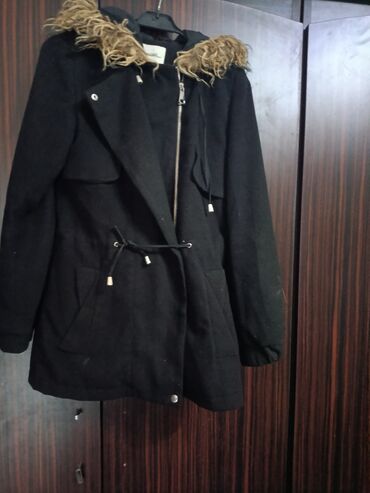 Qara rəngli qadın palto – PUNX brendi (etiketli) - Klassik, bədənə oturan siluet - Qalın, isti parça; iç hissə astarlı - Çıxarıla bilən tüklü yaxalıq (qara, yumşaq, həcmli) - Asimmetrik qapaqlı ön...