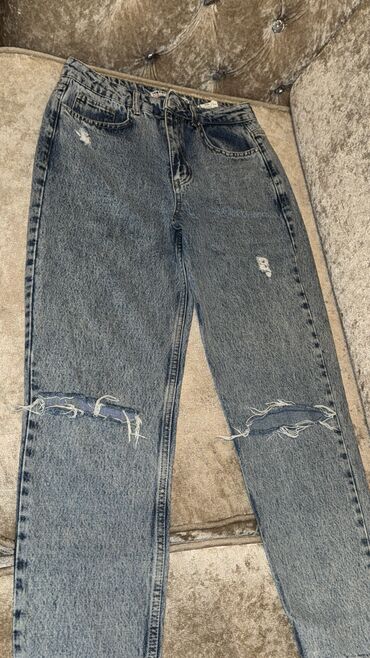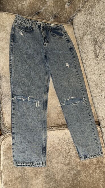 Mavi rəngli klassik denim cins şalvar - Model: düz/regular kəsim, orta bel - Rəng: açıq mavi “washed” effektli - Material: 100% denim (cibi və bel hissəsində gücləndirilmiş tikişlər) - Ciblər: 5 c...